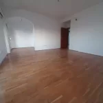 Two-bedroom unfurnished apartment 80m2 for rent, in Zabjelo. It is positioned on the fifth floor of a residential building and is oriented to the southeast. A terrace closed with an anodized lock extends along the entire length of the apartment. Public parking is available in front of the building.