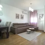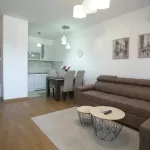 One bedroom furnished apartment 42m2 for rent, in City Kvart. It is positioned on the sixth floor of a residential building (not the last). The apartment is oriented southwest, and public parking is available behind the building.